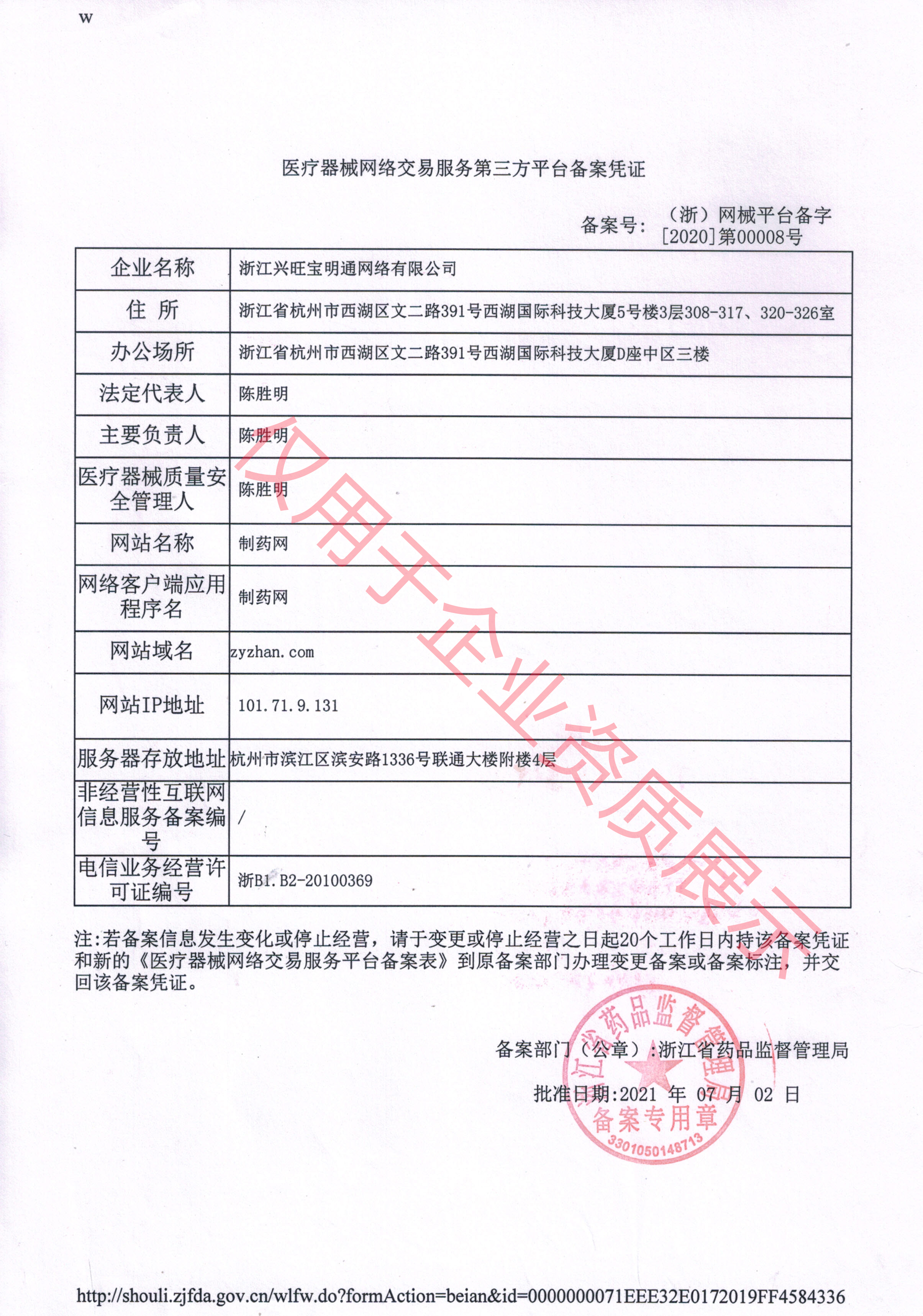ICP備案號:浙B2-20100369 互聯(lián)網(wǎng)藥品信息服務資格證書編號:(浙)-經(jīng)營性-2019-0057 備案號:(浙)網(wǎng)械平臺備字[2020]第00008號
